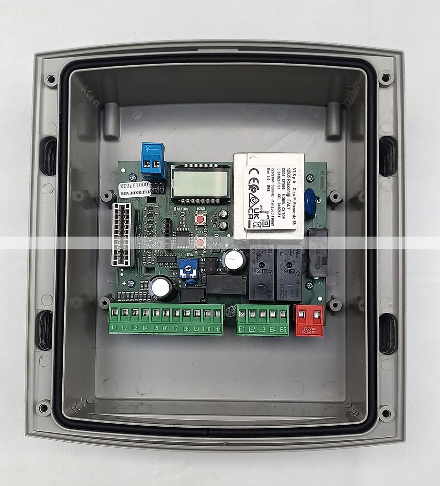 EASY-TOP je digitální řídící jednotka pro 1 pohon 230 V s automatickým zavíráním. Velmi vhodná pro řízení trubkových pohonů. Má vstupy pro oddělené ovládací prvky (vytažení/spuštění), vstup pro bezpečnostní tlačítko (STOP), vstup pro bezpečnostní fotobuňku s automatickým testem funkčnosti (PHOTO), vstup pro bezpečnostní lišty s automatickým testem funkčnosti (EDGE), vstup pro tlačítko nebo klíčový spínač (START), vstup pro poplašné zařízení v případě požáru (FIRE). Programování pomocí tlačítek a displeje. Sledování stavu vstupu zobrazovaného na displeji.